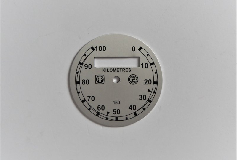 Cyferblat licznika 0-100km/h, srebrno-czarny, AP-ČZ, CZ 150 C