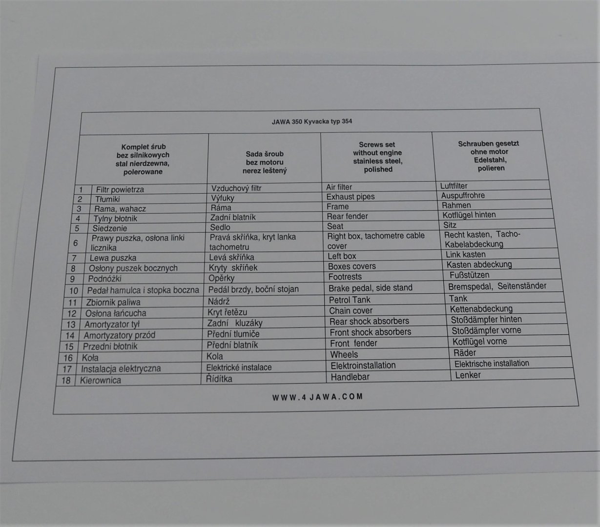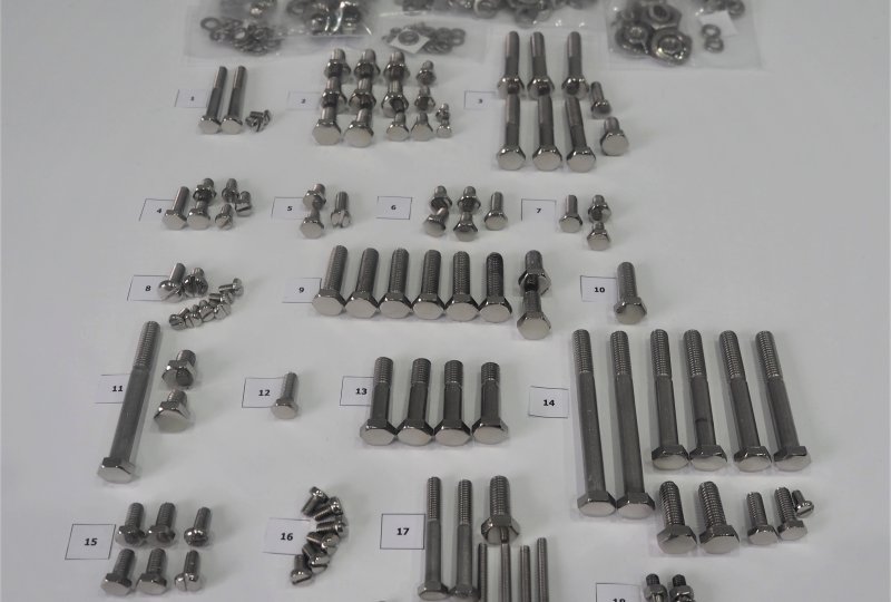 Komplet śrub, bez silnikowych, nierdzewne/polerowane, Jawa 350 Kyvacka