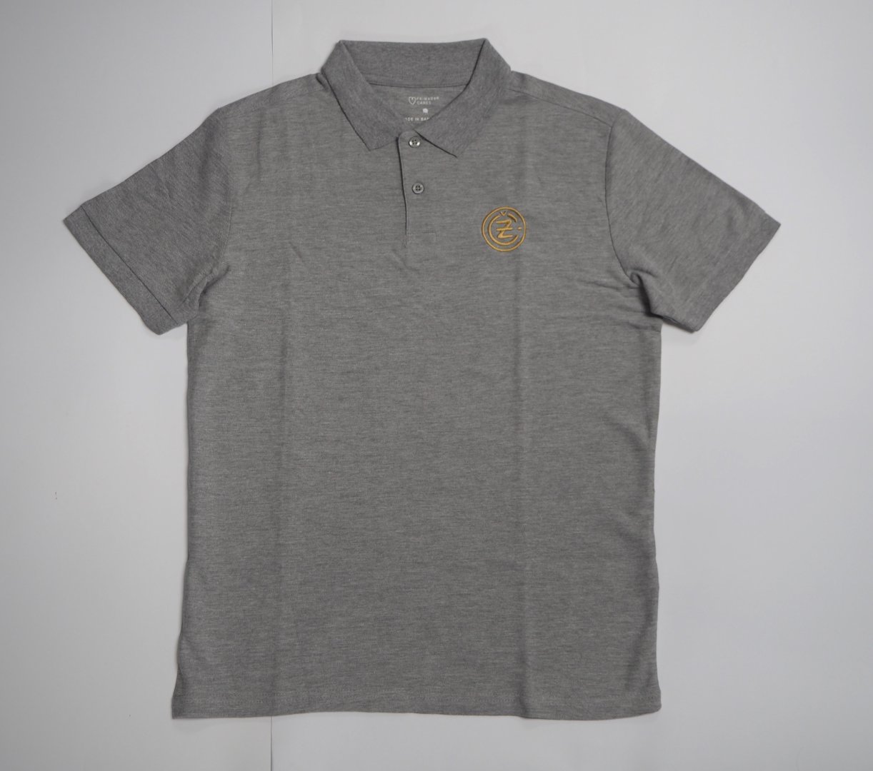 Koszulka bawełniana polo, szara, logo CZ-złote, rozmiar S