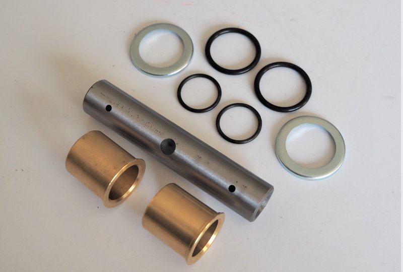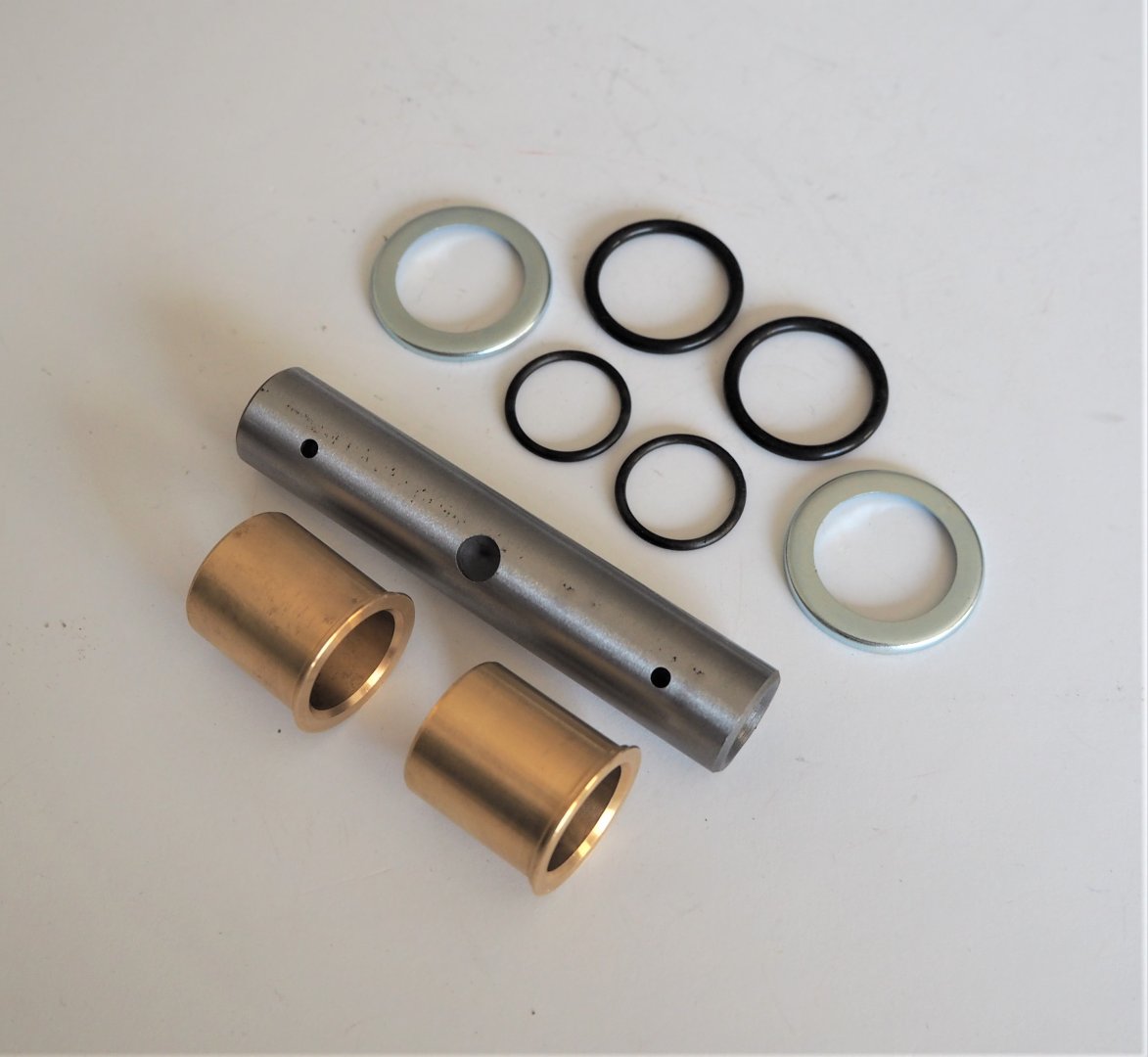 Sworzeń wahacza z tulejami 20x105mm, mosiądz + podkładki z gumami, Jawa, CZ 1954--